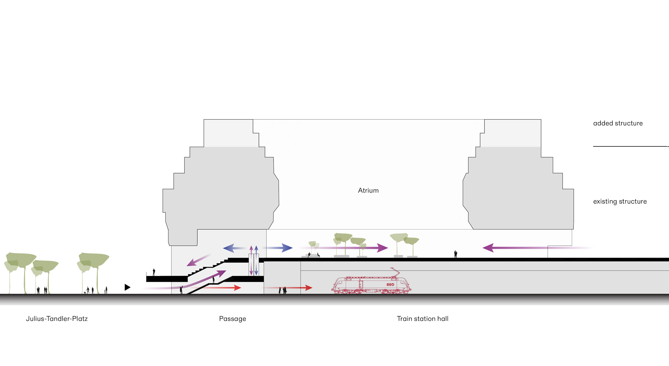 Decisive premises of the project development were the pedestrian permeability, the opening to Julius-Tandler-Platz, the broadest possible mix of uses, the redensification of an urban core zone and the harmonious integration into the urban space.